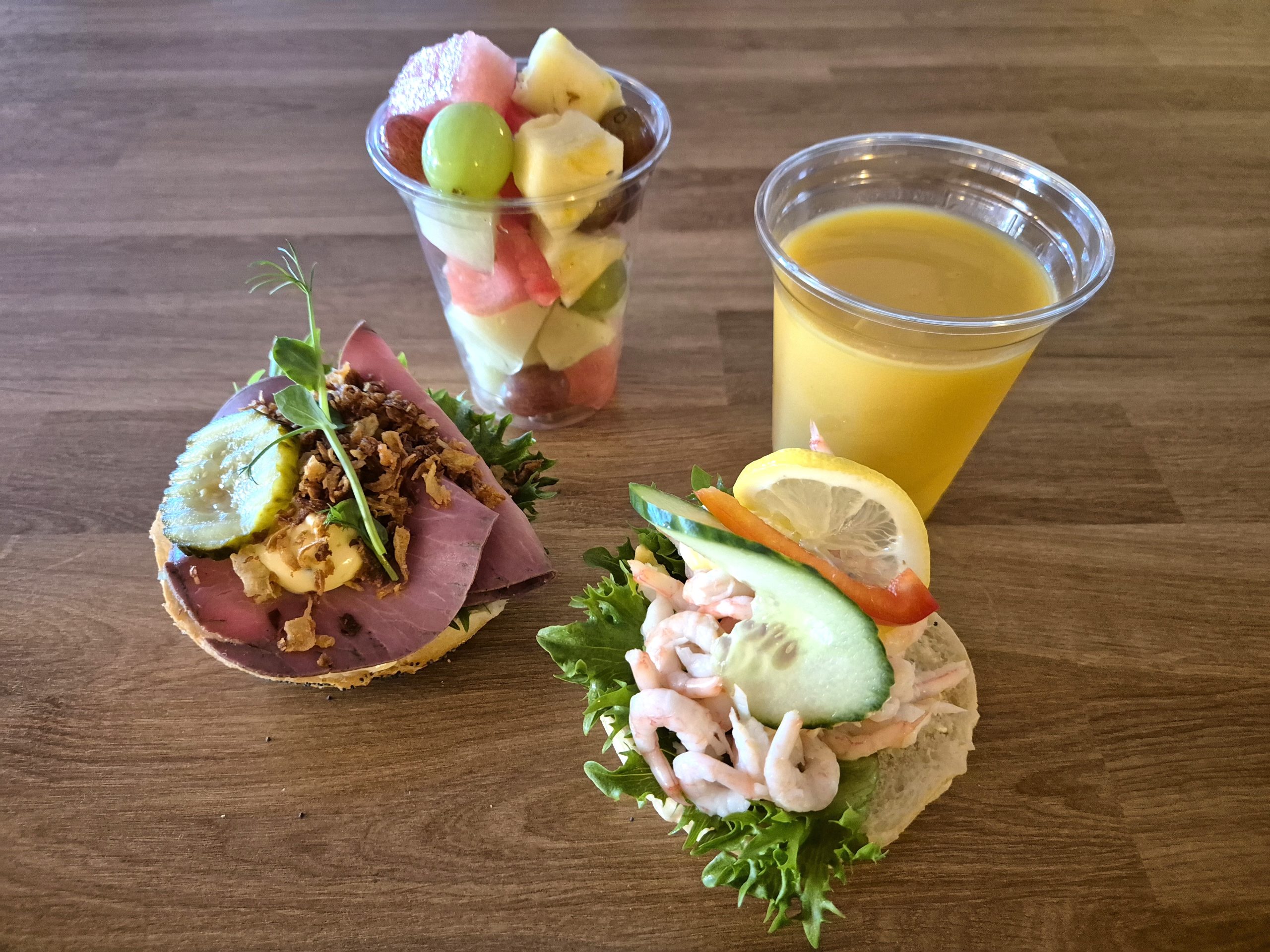 • Assorterte rundstykker: reker med majones (1,2,3), røkelaks med eggerøre (1,3,4,6,7), grillskinke og ost (1,3,7), roastbiff med remulade (1,3,6,10)
